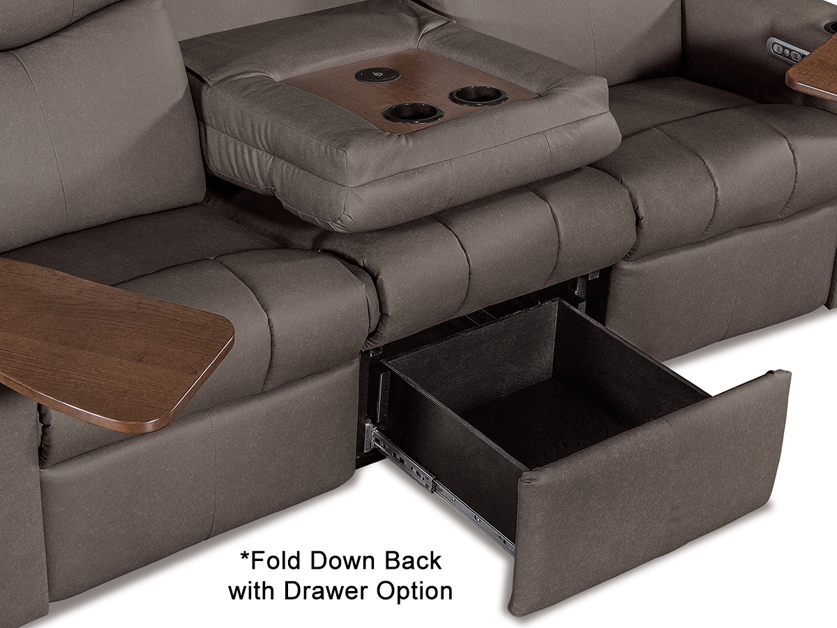 Options*Power Recline is Standard - Choose Inside or Outside Switches$460 Optional Power Headrests (Outside Recliners Only)$275 Optional Center Recline w/ wired Remote Control$250 Pair of Arm Tables (mocha cherry is standard)